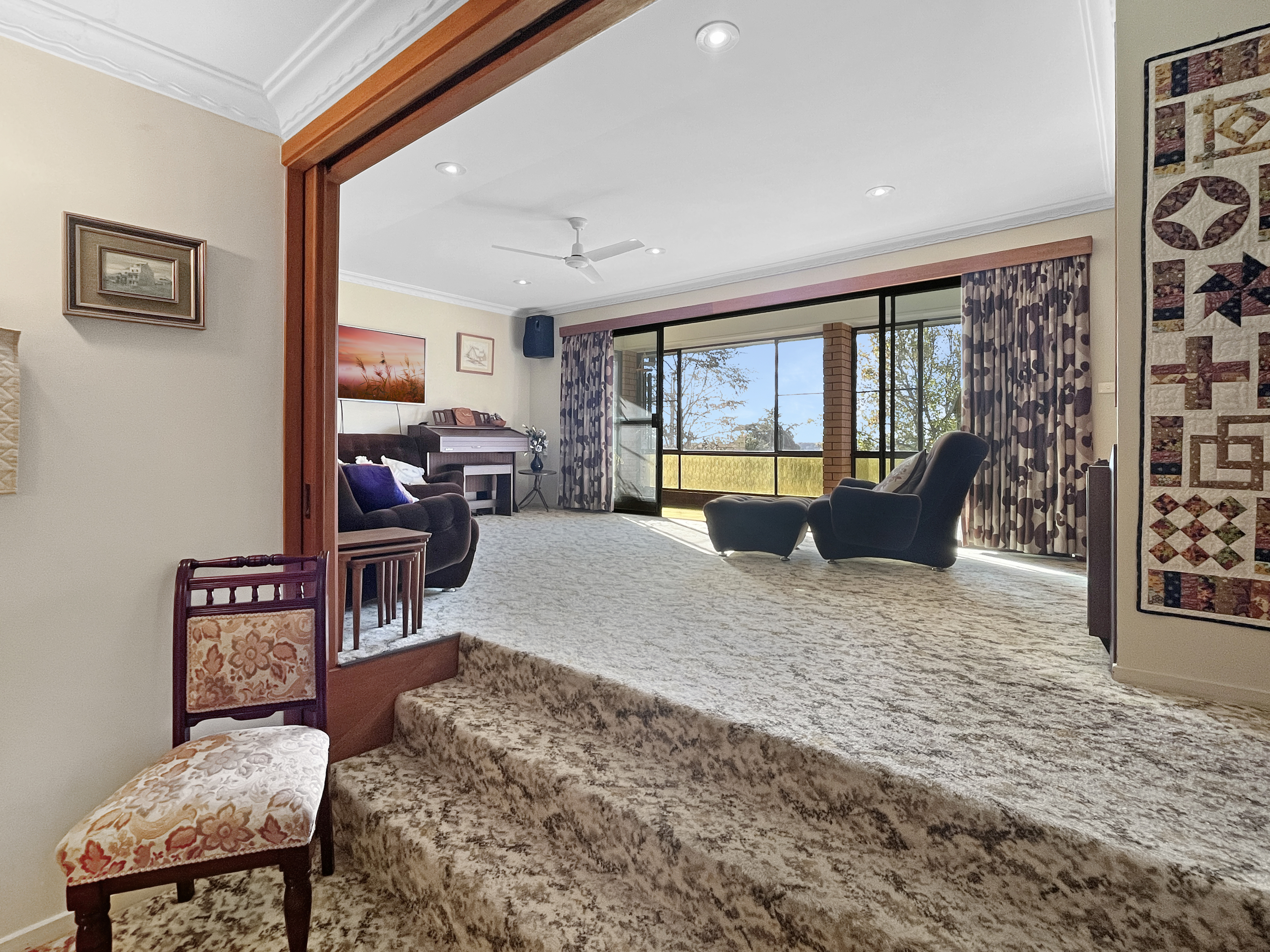 Just listed, this family home circa 1975 is very well located with elevation and ideal northerly aspect. Solid multi level brick veneer home with three bedrooms main with ensuite, bathroom, lounge room, formal dining and kitchen and dining room which opens onto a north facing enclosed sunroom extending the living area with fantastic views. Recently installed reverse cycle airconditioning in the living area.